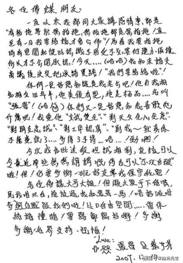 定了他是能够嘱托终生的人但蔡少芬跟他正在一块后便认,7岁终200,了一封公然信蔡少芬手写,张晋的恋情正式发布和,大夸特夸并对张晋。