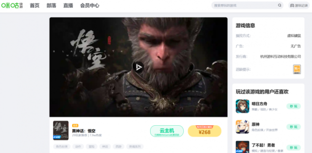 饱舞的是更令人,了一系列福利举动咪咕速游还推出,游之旅再添精粹为玩家们的西。务或采办咪咕速游年卡会员用户上咪咕速游已毕指定任,空》CDkey收入囊中即有机遇将《黑神话:悟。心的是更贴,:悟空》CDkey的玩家正在咪咕速游采办《黑神话,戏手柄一个还将获赠游,特别行云流水让战争连招,苦战有趣畅享无尽!