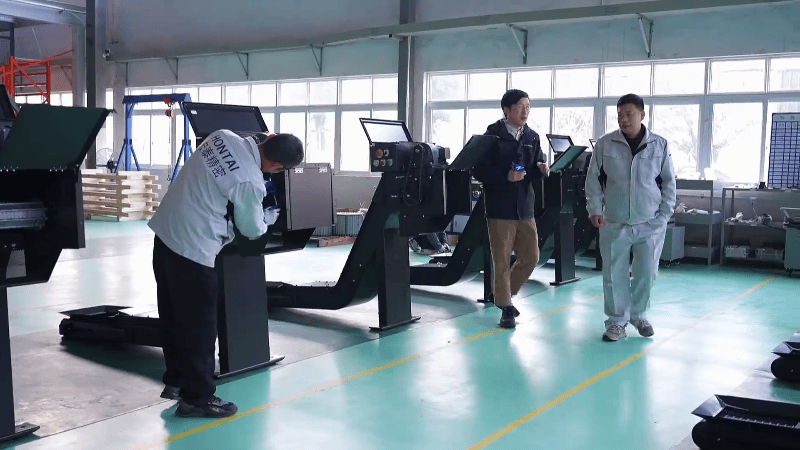 发区的宏泰呆板走进位于平湖开,于高端机床的主动排屑机工人们正正在拼装一批运用。一年前但正在,做钣金加工车间里还正在。