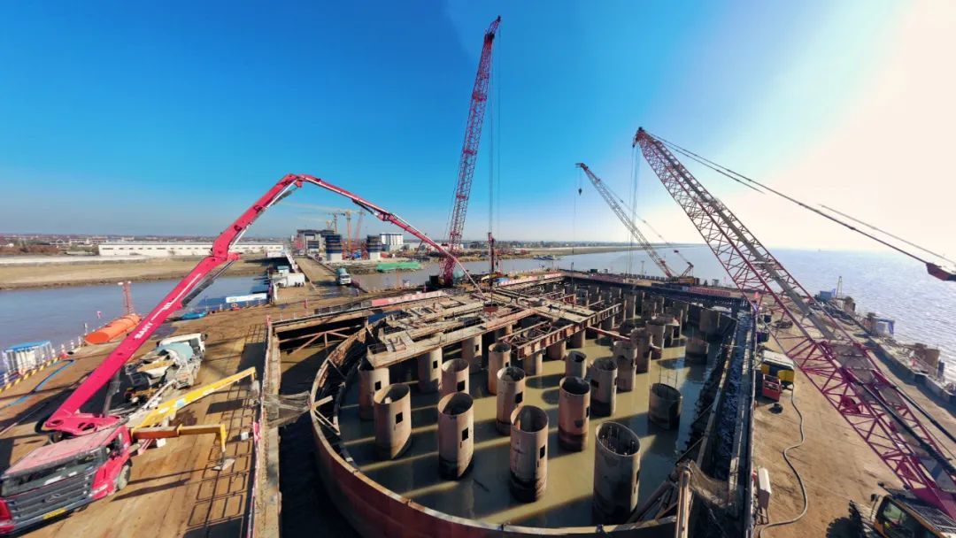 晨2时15分12月9日凌,入海口北支航道江面施工现场正在间隔启东岸200米的长江,入主墩钢围堰F2隔舱内跟着结尾一车混凝土注太平洋在线下载钢围堰水下混凝土五次封底统共竣工符号着崇启公铁长江大桥4号主墩,主墩承台施工阶段项目修筑将进入。