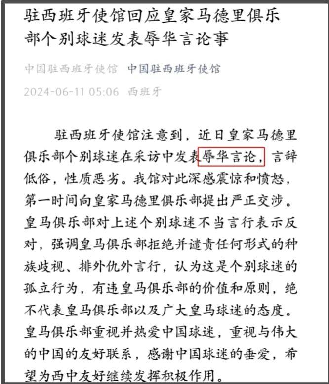 024年就正在2,皇马球迷公然敌对一位体育博主遭到,辱中国女性的歌曲对方诱导他演唱侮,马球迷是皇马俱笑部高层的孙子后续网友还扒出涉嫌敌对的皇。