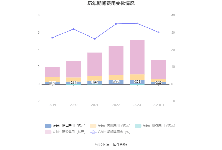 年上半年2024,为2.79亿元公司时间用度,049.08万元较上年同期补充5;为30.34%但时间用度率,3.95个百分点较上年同期低重。中其,长13.29%发售用度同比增,长10.54%执掌用度同比增,长22.73%研发用度同比增,.94万元变为-40.86万元财政用度由昨年同期的-395。