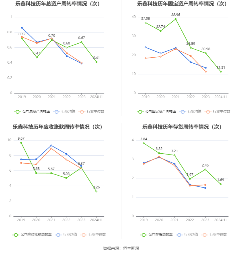 力方面营运能,年上半年2024,转率为0.41次公司公司总资产周,年上半年行业均匀值为0.19次上年同期为0.31次(2023,业7/45)公司位居同业;为11.31次固定资产周转率,3年上半年行业均匀值为6.72次上年同期为10.55次(202,业15/45)公司位居同业;率分歧为3.26次、1.69次公司应收账款周转率、存货周转。