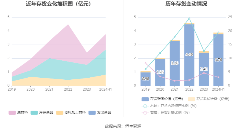 转化来看从存货,4年上半腊尾截至202,值为3.76亿元公司存货账面价,19.47%占净资产的,1.34亿元较上腊尾补充。中其,208.43万元存货抑价计划为1,3.11%计提比例为。