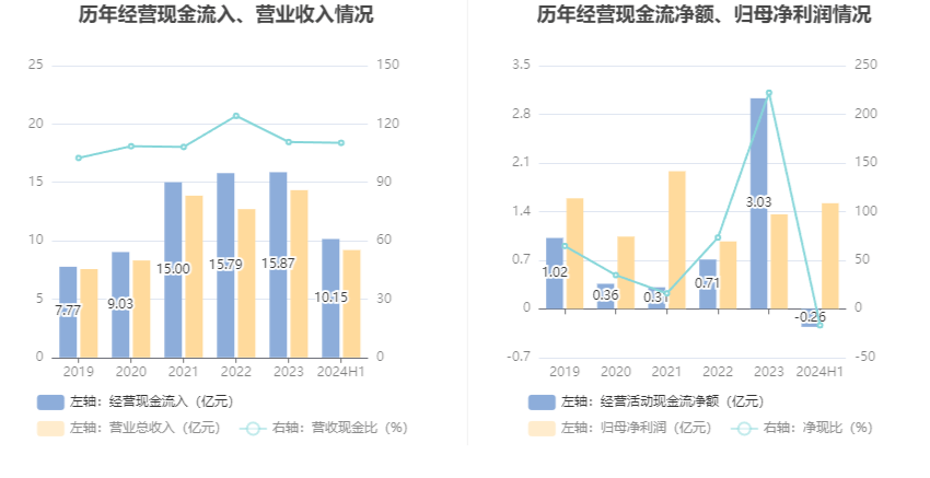 年上半年2024,为-2567.68万元公司筹办营谋现金流净额,.25亿元同比淘汰1;额-1.64亿元筹资营谋现金流净,.81亿元同比淘汰1;净额2.13亿元投资营谋现金流,808.76万元上年同期为-8。